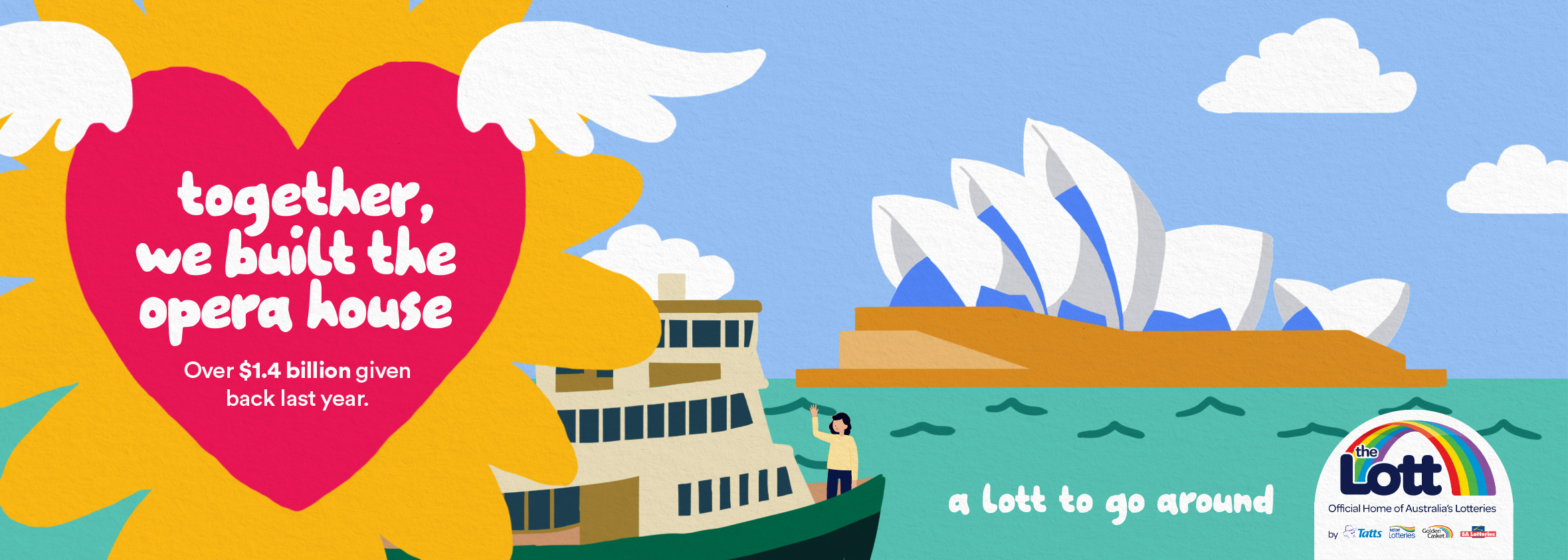 The Lott has given back with over $1.4 Billion back to Communities last year. In fact, they help build the Opera House. We found a way to commincate all of these achievements using an animation style.